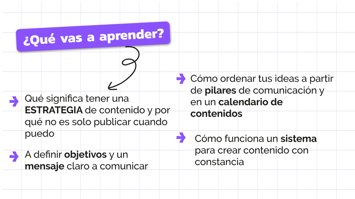 Descubrí las claves para ganar claridad, foco y aprender a crear una estrategia de contenido ordenada para comunicar con intención, dejar de improvisar y alcanzar tus objetivos 🎯